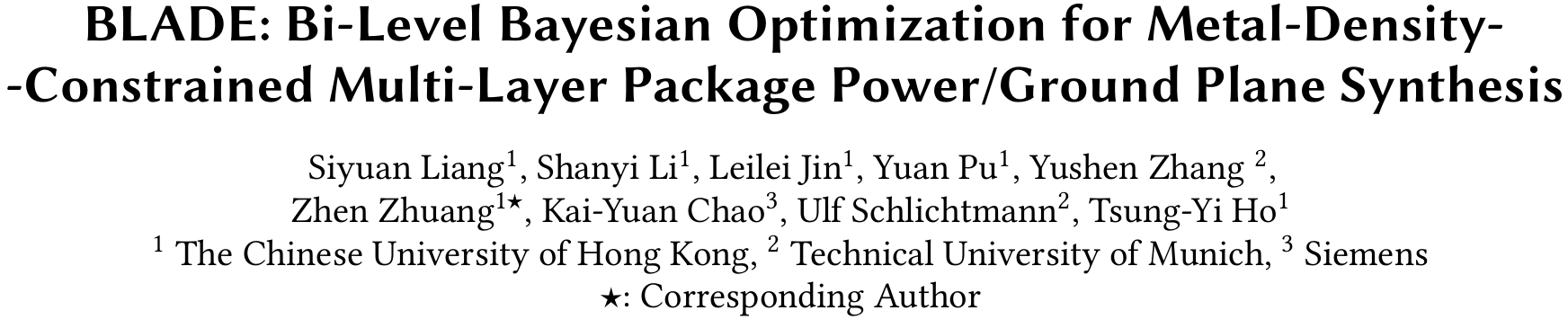 Thanks to the contributions of all the co-authors, this work gets accepted! This work evolves from our previous TCAD paper about design automation for package power/ground planes, it proposes a bi-level Bayesian optimization framework that efficiently tackles the complex tradeoff among IR drop performance, reliability, and manufacturability. Experimental results show its great performance in synthesizing power/ground planes with much better IR drop performance, while fulfilling practical reliability and manufacturability requirements.